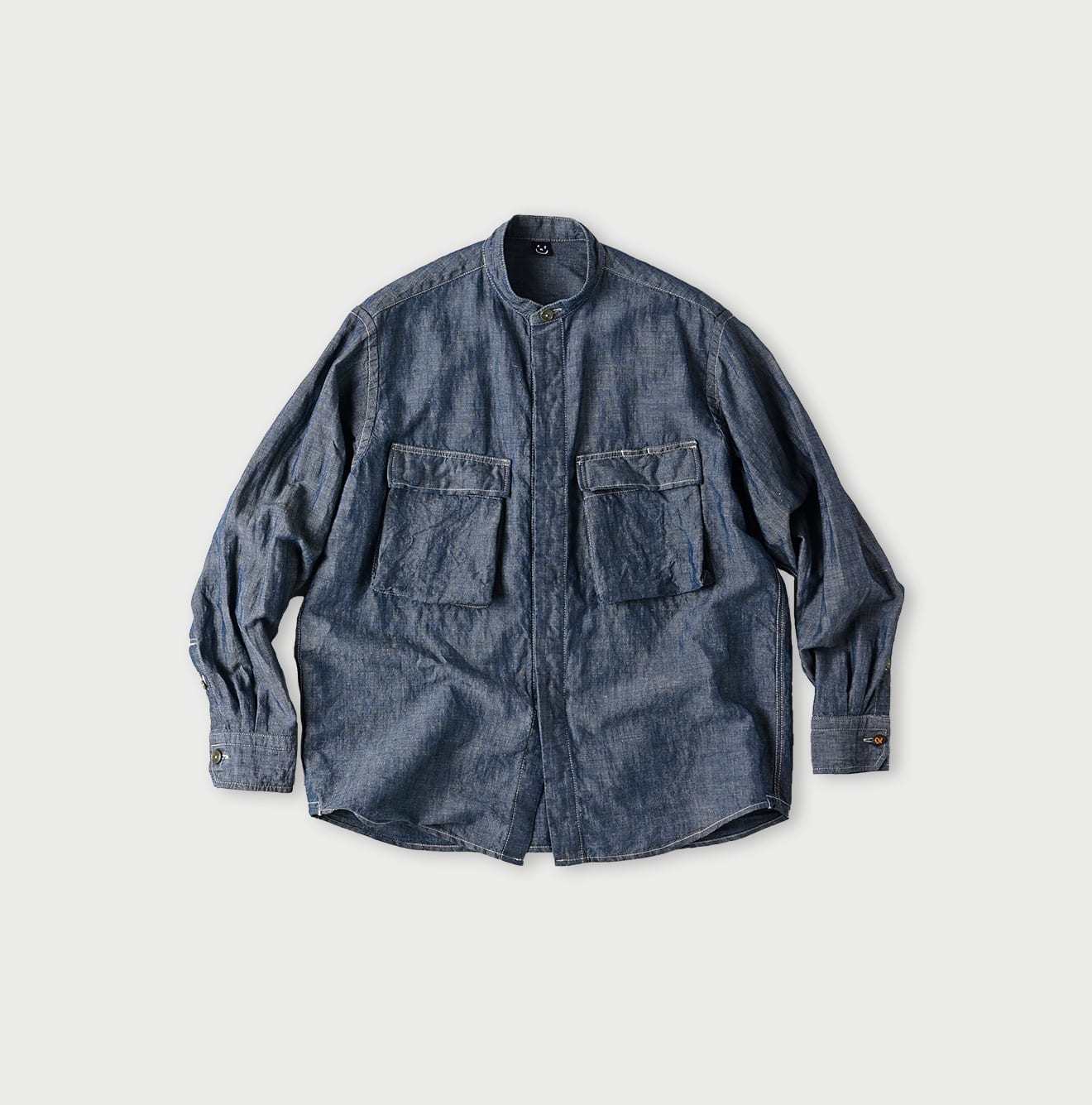 綿麻瑠璃ダンガリーの908ニームシャツ(濃)