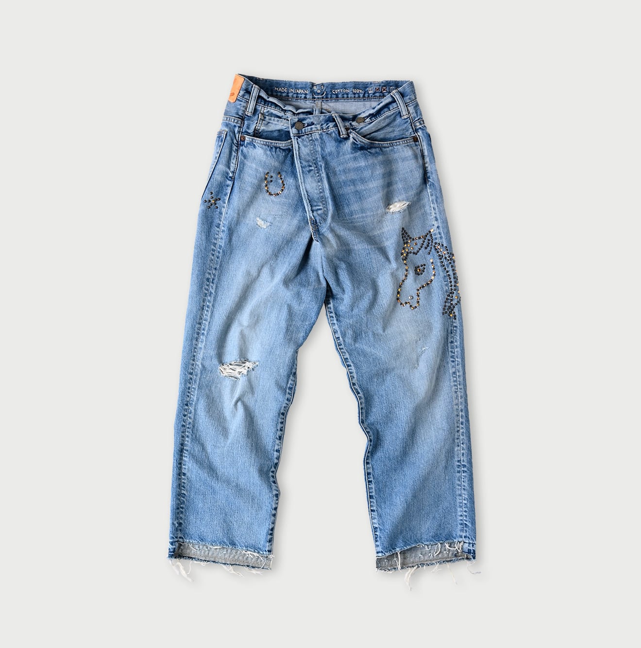 ライ麦デニムのクロスオーバーパンツ 遖加工(馬スタッズ)