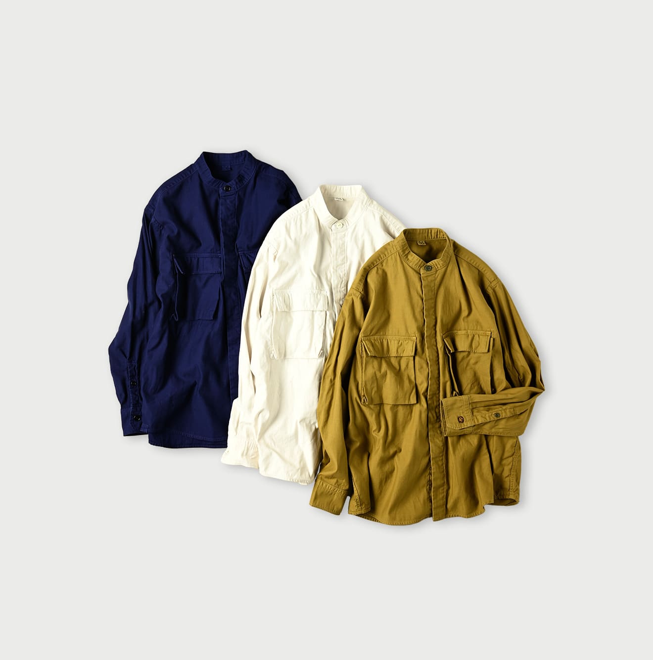 薄バックサテンの908ニームシャツ