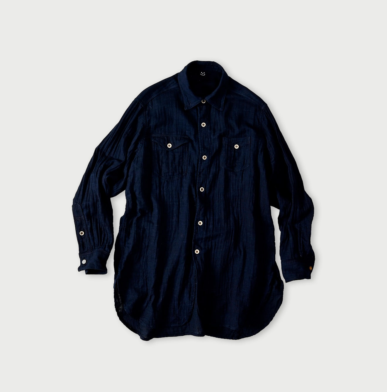 ガーゼ二重織の908ガチャポケシャツ(インディゴ)