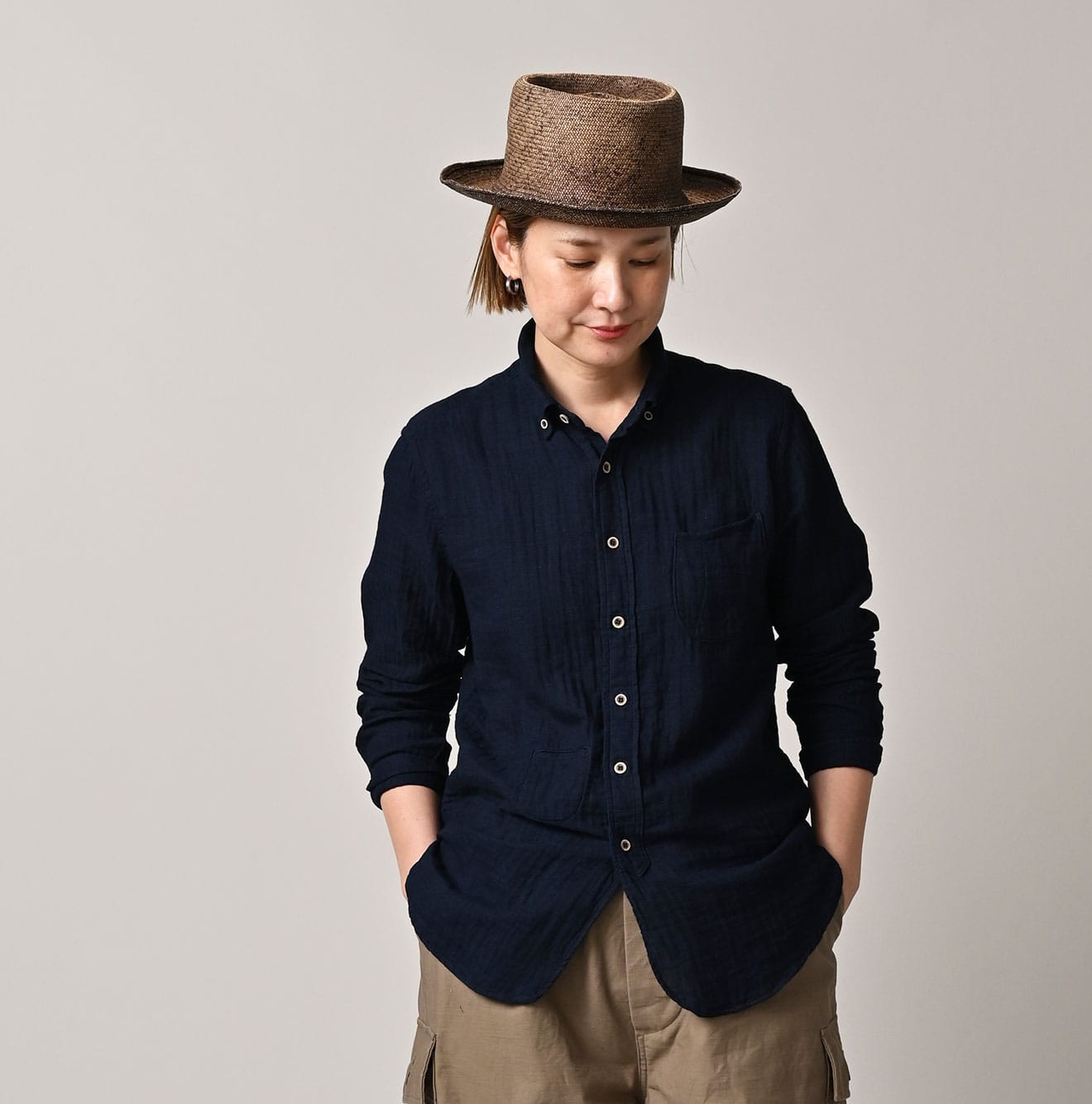 ガーゼ二重織の908ローファーボタンダウンシャツ(インディゴ)