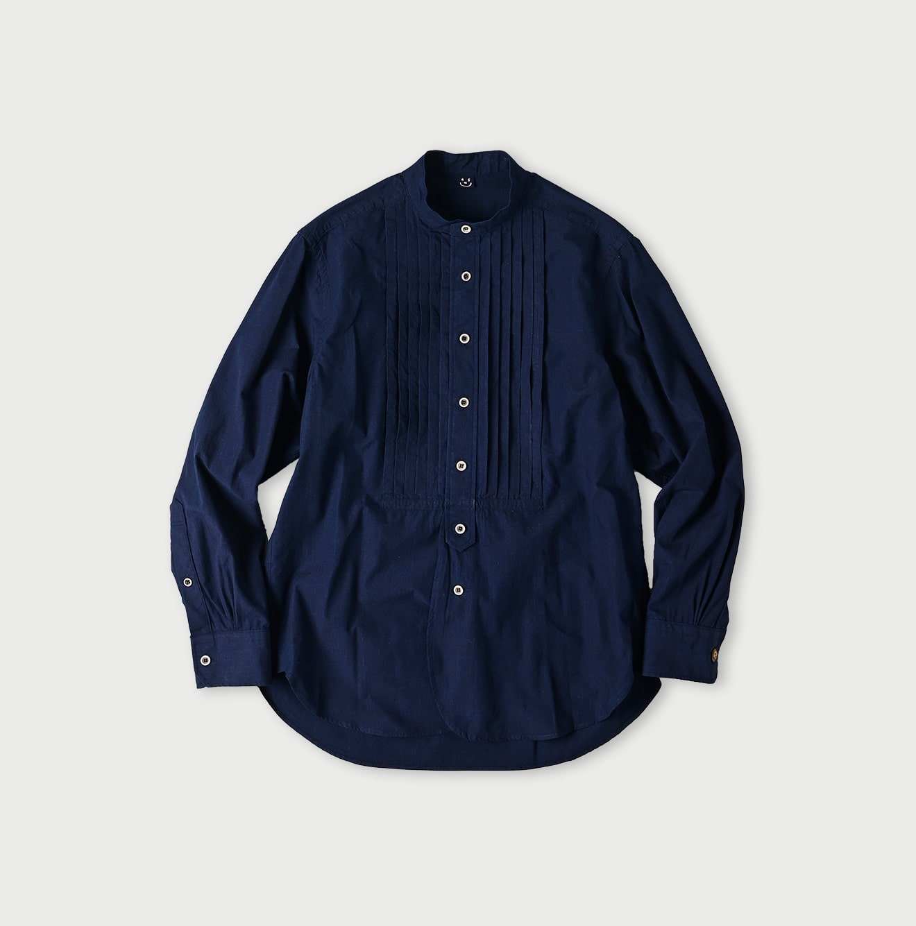 バチストの908ピンタックスタンドシャツ(インディゴ)