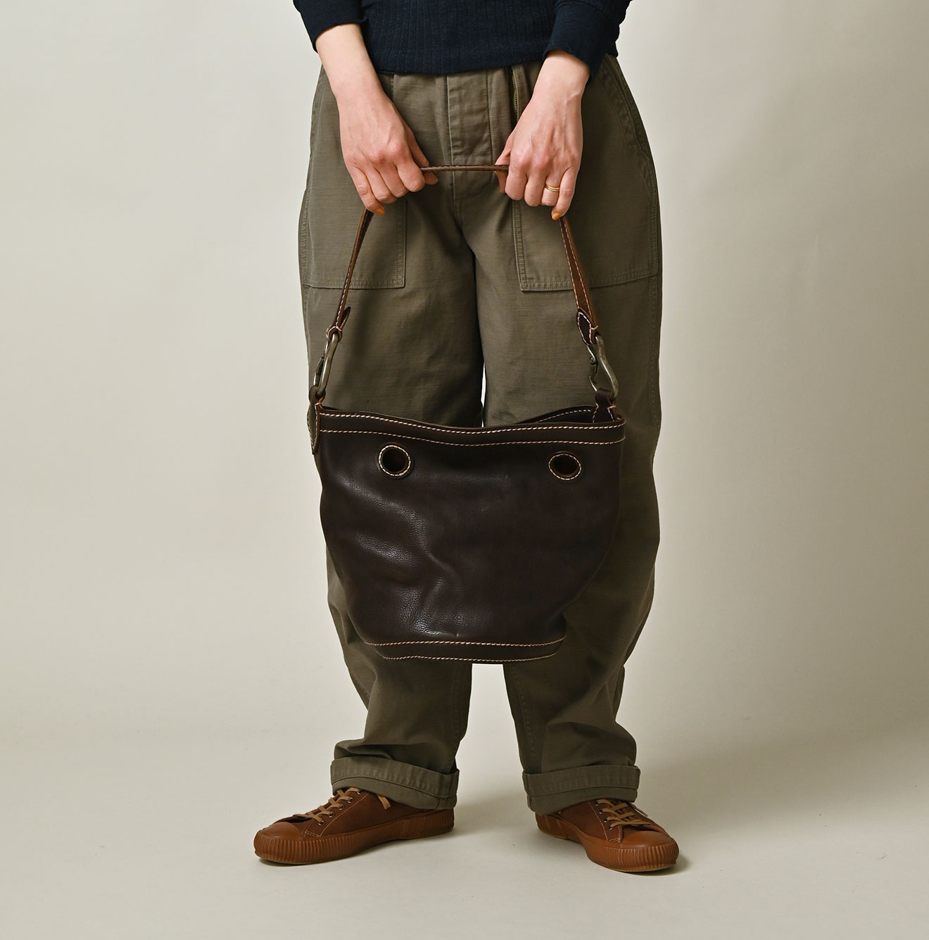 ハンドメイドのレザーバケツバッグ グランデ
