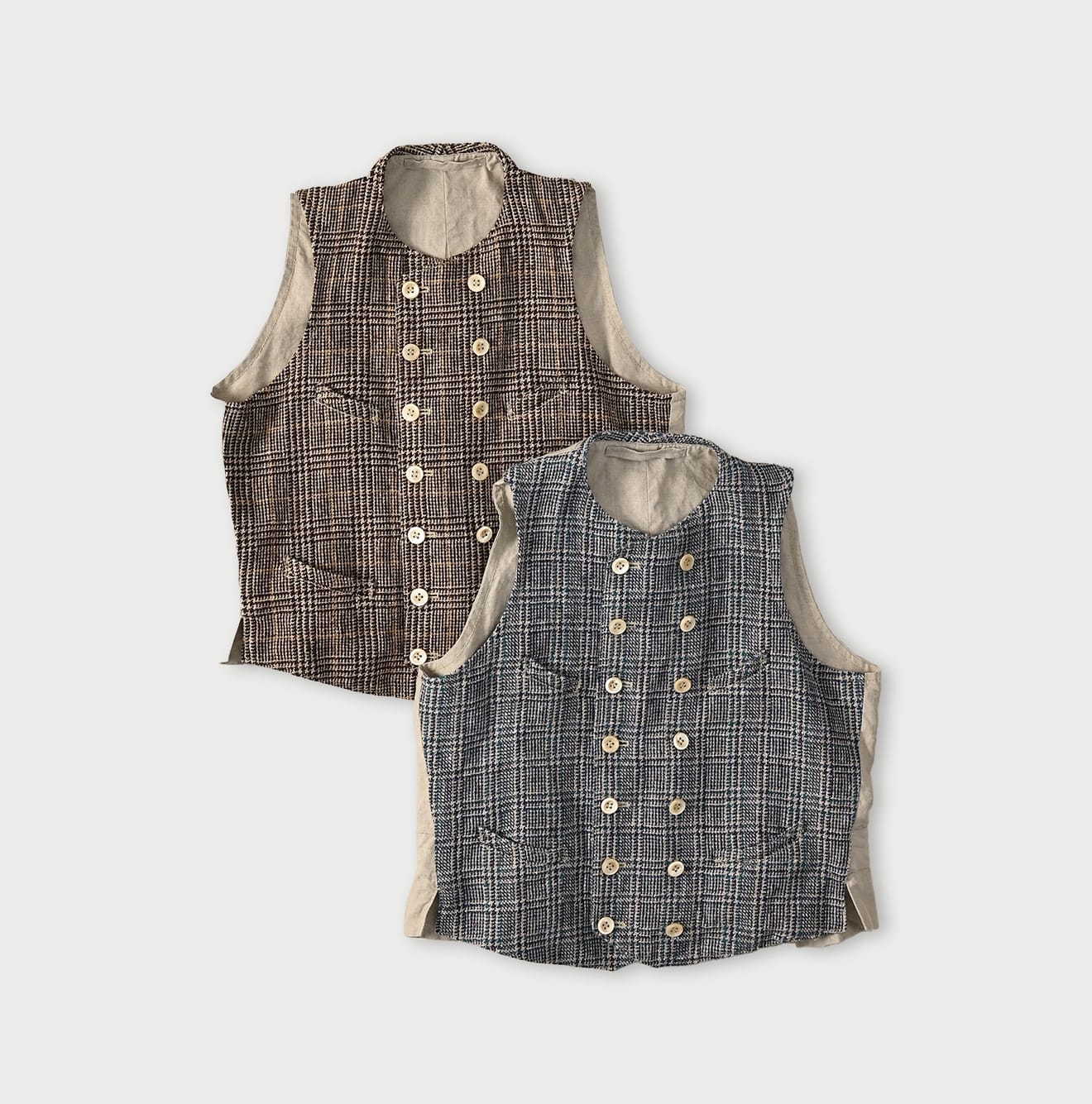 綿麻ツイードのダブルベスト