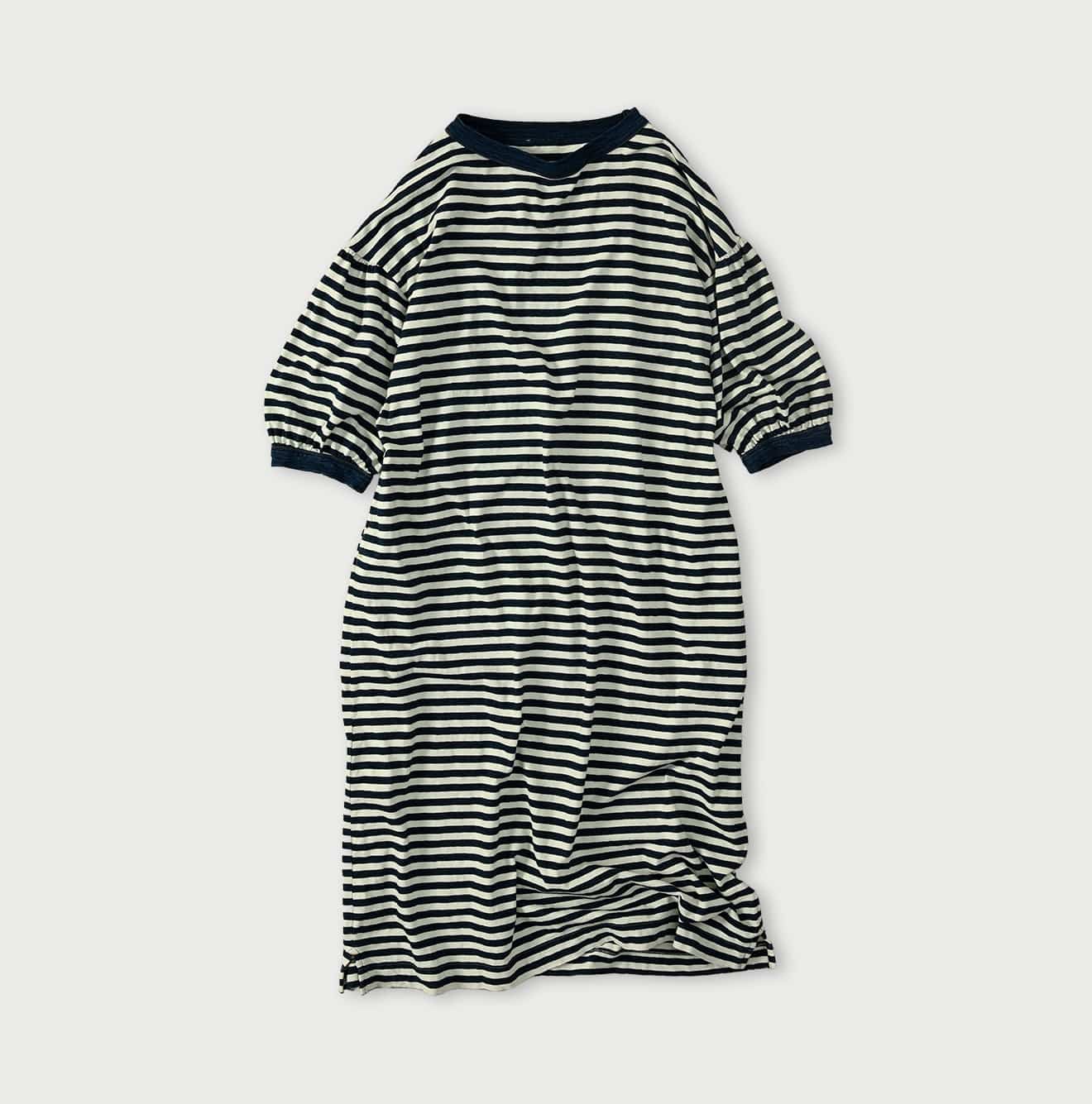 ボーダー天竺のパフドレス(インディゴ)