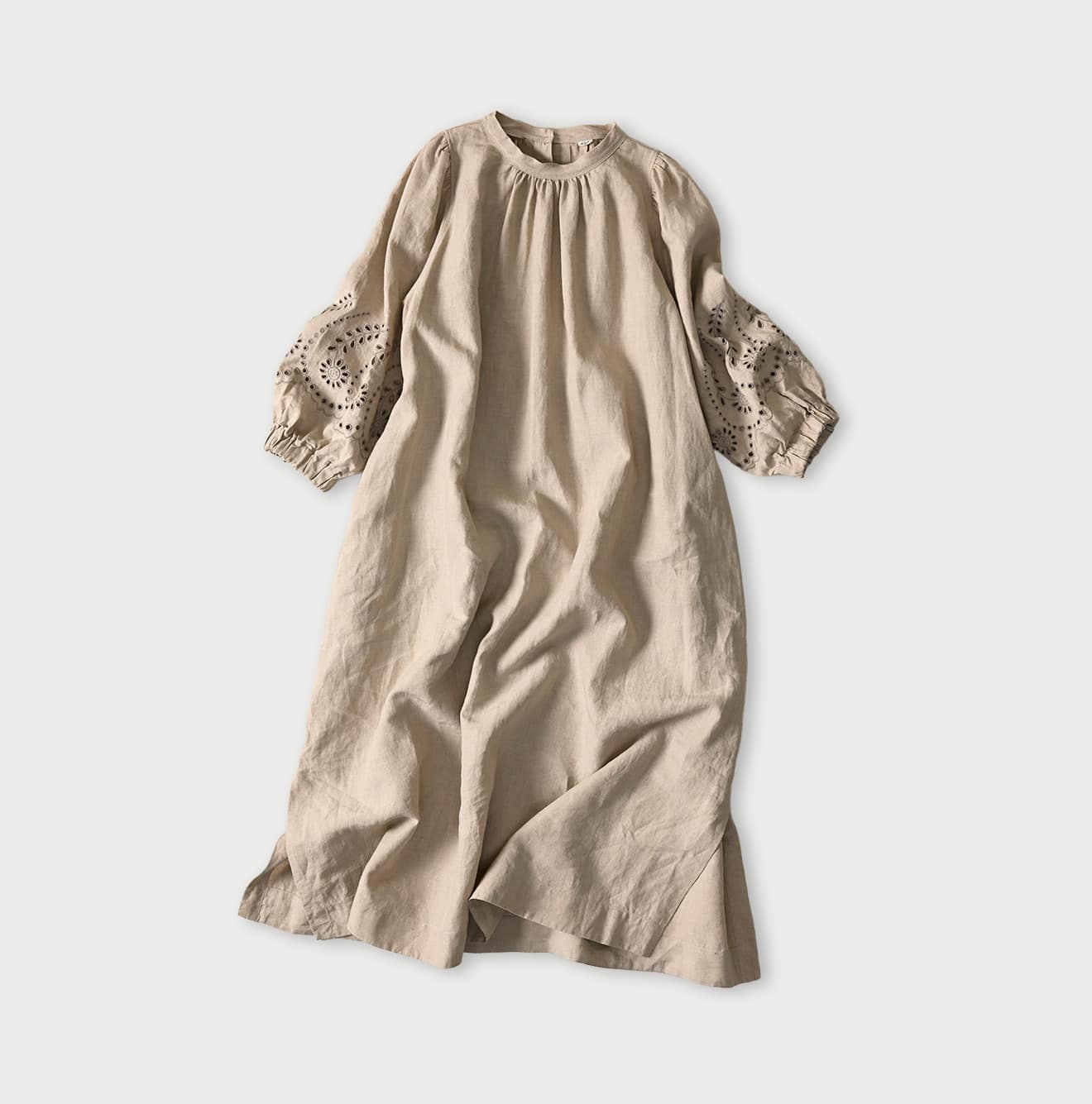 60リネン刺繍のパフドレス