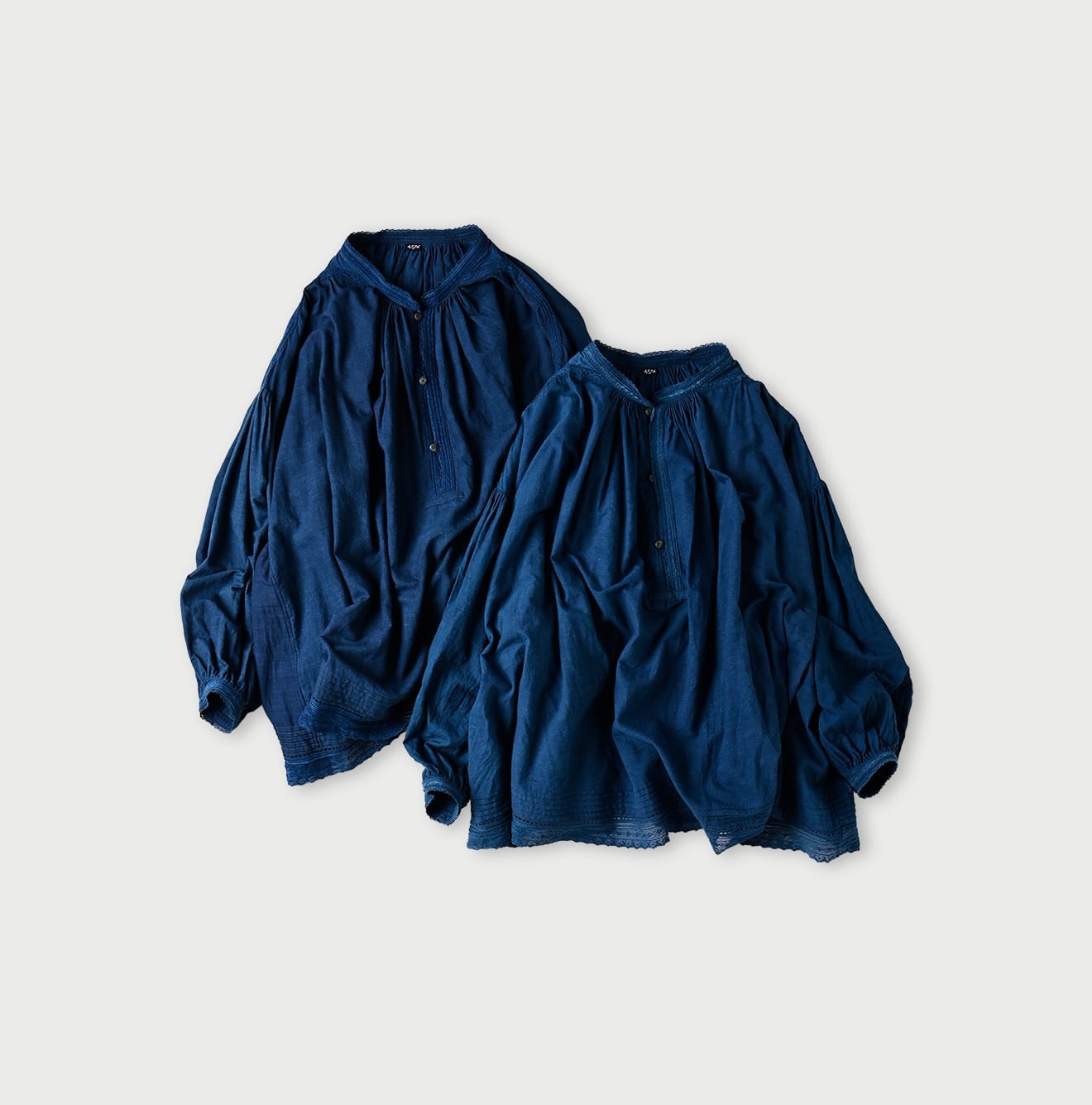 インドカディレース×タックのスモックブラウス(藍)