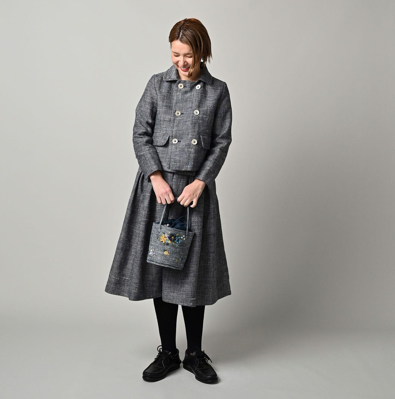 綿麻ツイードのアニーミニジャケット(インディゴ)