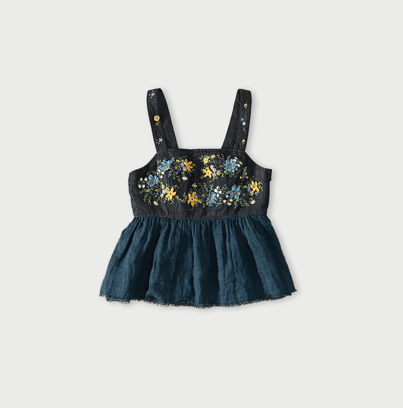 リネン重ね刺繍のキャミソール(藍・インディゴ)