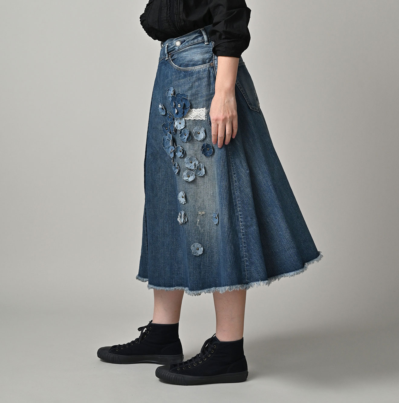 ライ麦デニムのクロスオーバースカート 遖加工(フルール・重)
