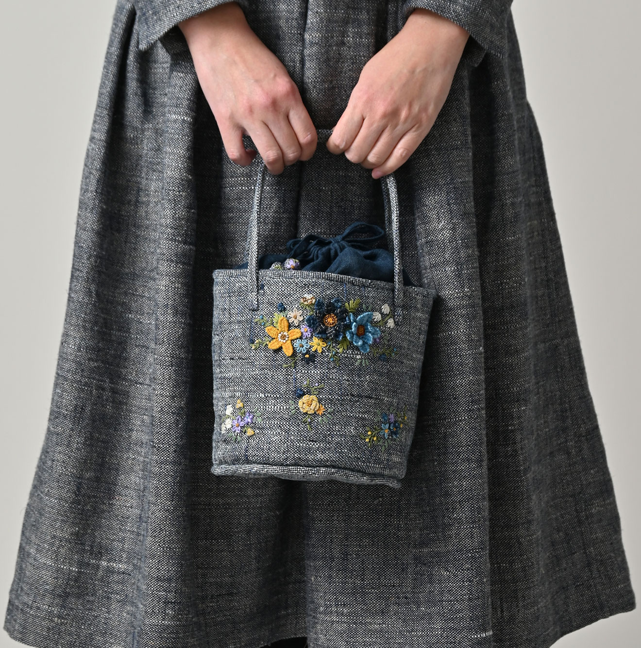 ツイード刺繍のプティバッグ(インディゴ)