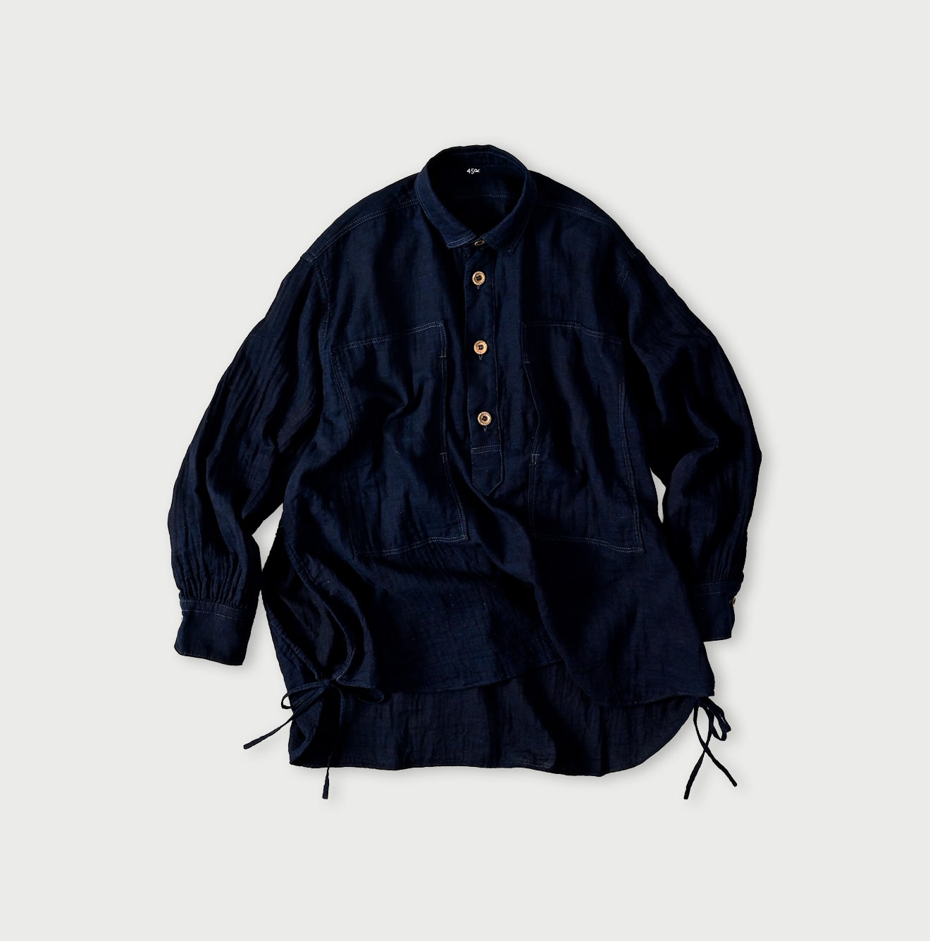 ガーゼ二重織のボーイフレンドシャツ(インディゴ)