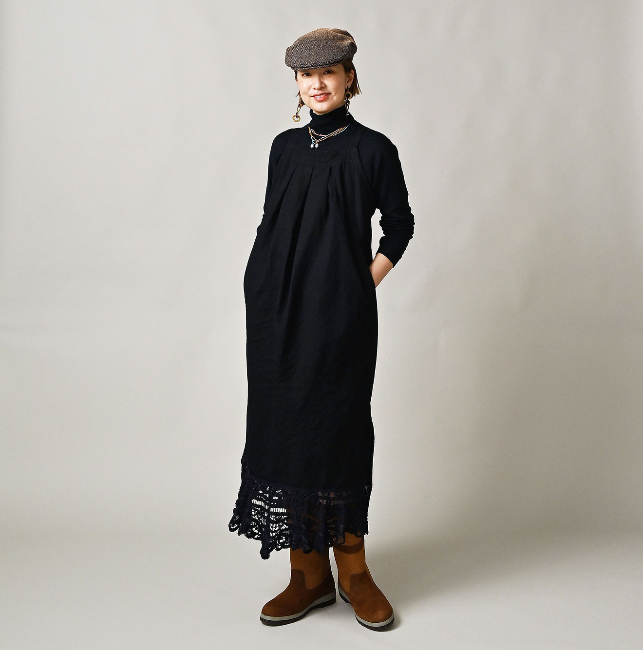 高密度ダック×リボンレースのタックタックドレス(インディゴ)