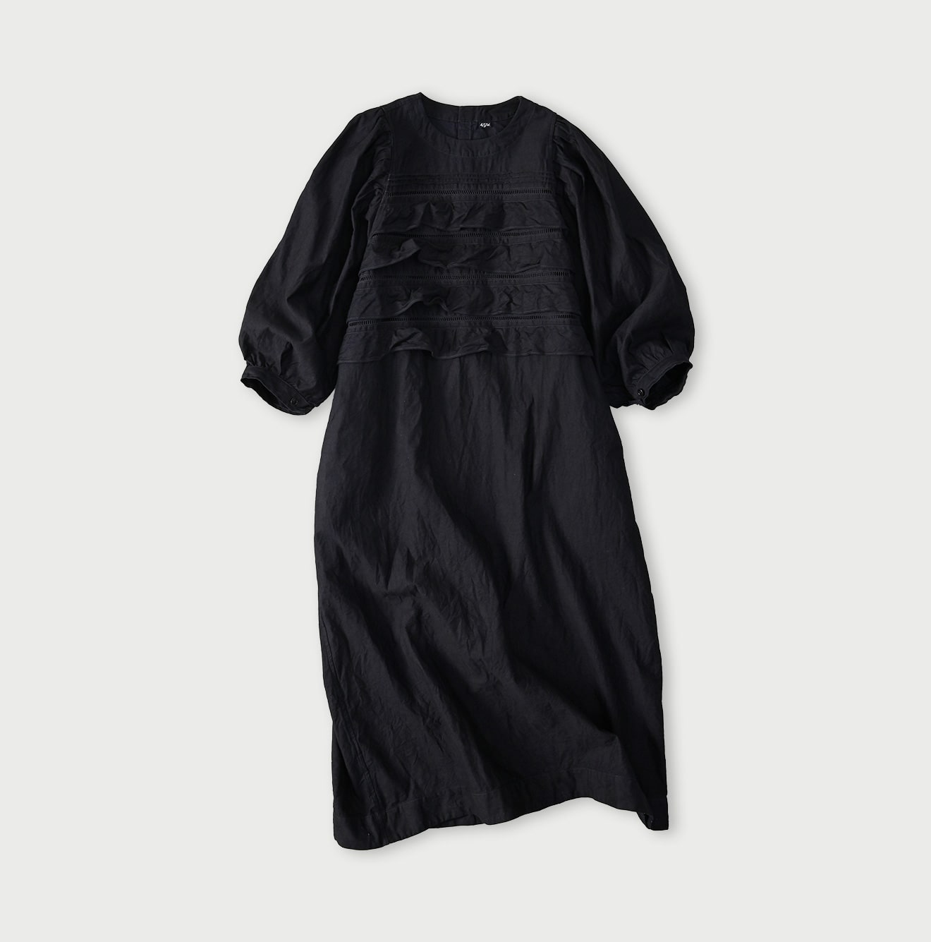 薄バックサテンのティアードフリルドレス(インディゴ)