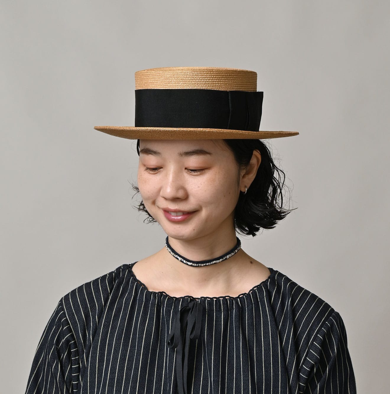 アンティークビーズのレザーチョーカー