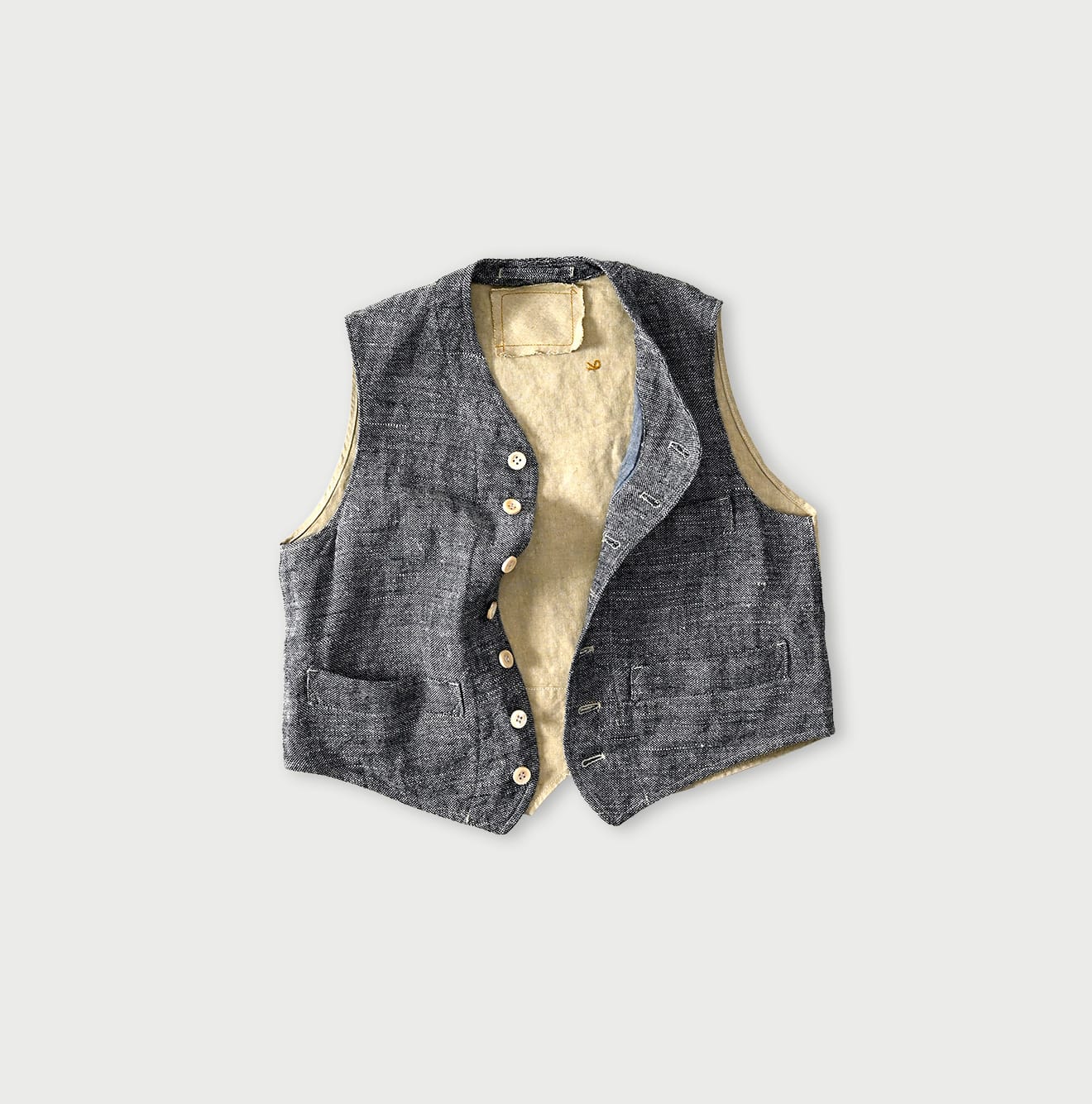 綿麻ツイードの908みゆきベスト(インディゴ)