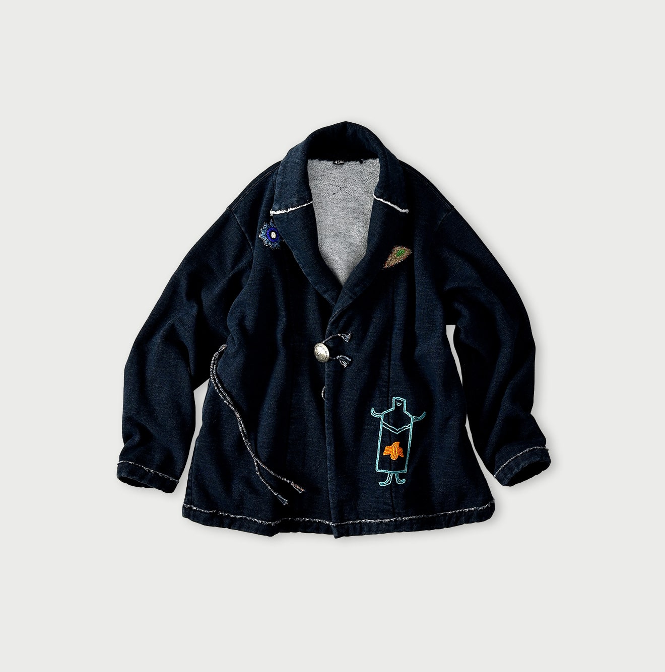 山裏毛の908ショール(インディゴ・ビーズ刺繍)